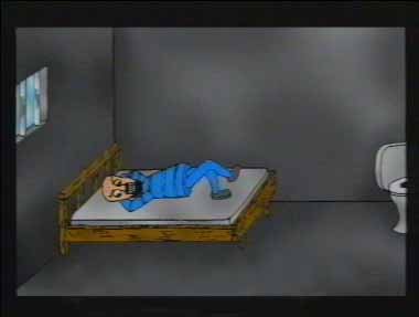 This humourous 2D hand-drawn animation is also a hard-luck story of a man locked in a fortified jail in the middle of the ocean. He receives instructions on how to escape and sets about to dig himself out. Bearing a strong resemblance to the animated character, Mr. Garrison from Southpark, the prisoner crawls through his tunnel to find he’s landed on a deserted and barren island and is no better off, a possible play on the plot-line of Pappillon.