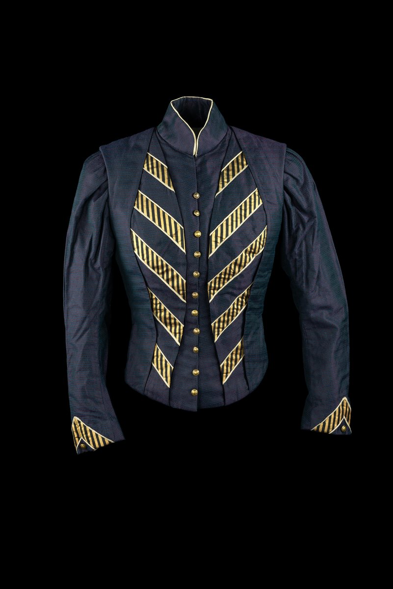 The Great takes a creative approach to its historical characters and settings that is mirrored in its costumes - this war dress might have a classic silhouette, but the grimy pearlescent fabric and striking oxblood detailing is completely modern. Faking history is a time-honoured tradition in film, from historical fiction to propaganda.