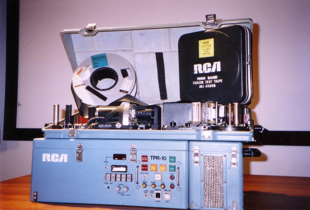 RCA TPR 10 early portable 2 inch videotape recorder. Highlighted as important item in broadcasting history.