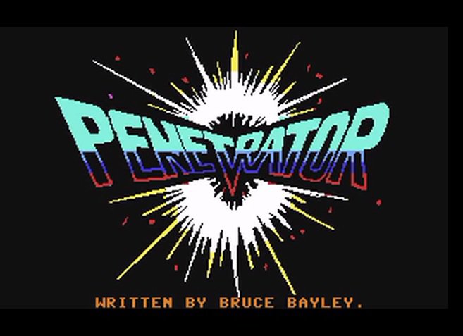 Penetrator is a side scrolling shooter for one or two players for the Commodore 64. The player flies a fighter across the screen from left to right, dodging terrain and enemy shots and shooting enemy structures. Players can accelerate and brake their fighter but prolonged braking can stall it. Enemies become more accurate the longer the player is exposed to the radar and the danger level is shown on the player’s console. The game can also be customised for landscape and the number and positions of enemy missile and radar bases.