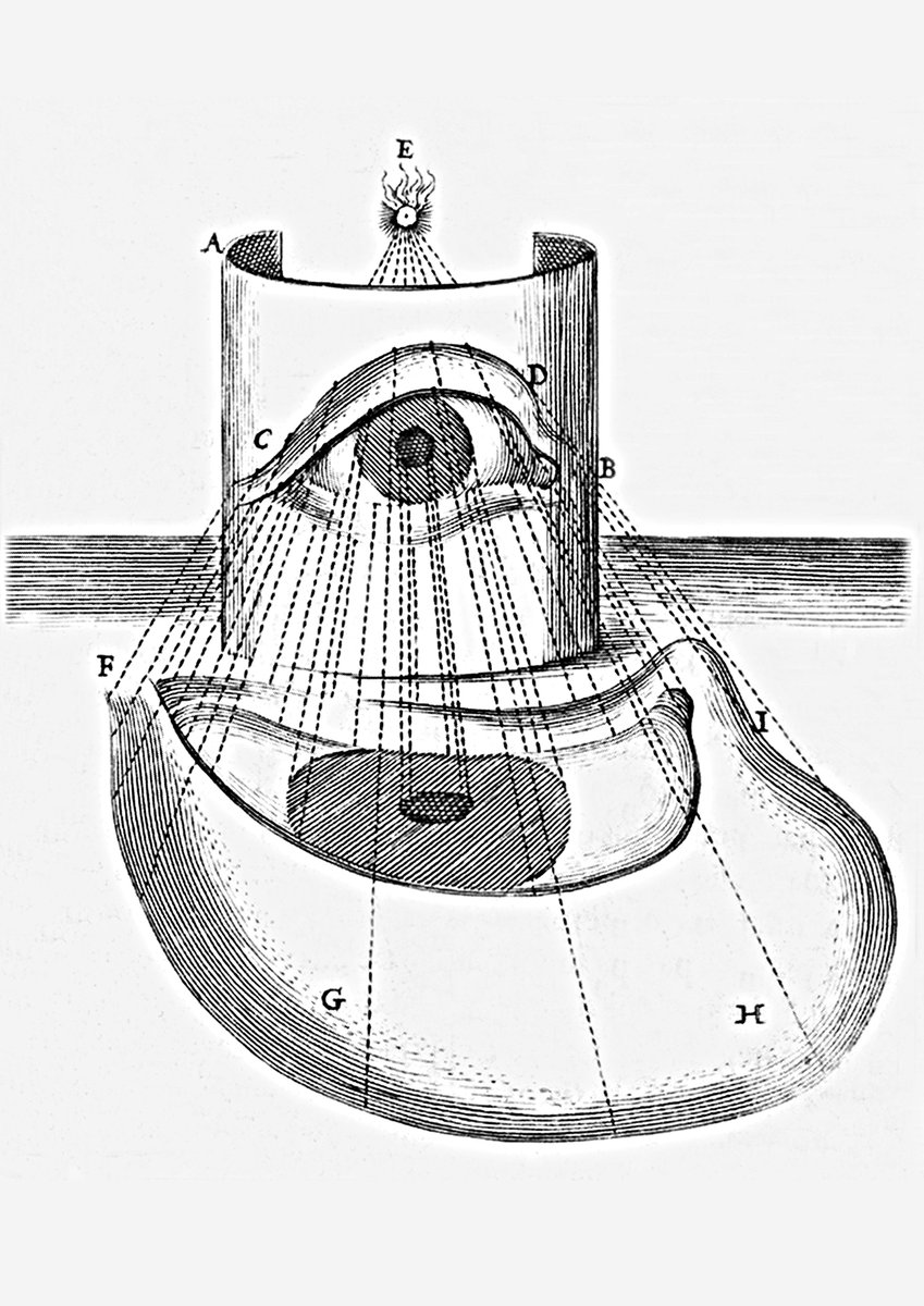Anamorphic illusions like these hide their true subjects in distorted perspectives. When you view them with a viewing cylinder they reveal recognisable images, and some are even made to unveil their images when you look from the right vantage point. Anamorphic drawings helped establish perspective in paintings, photography and special effects, and they also influenced the development of CinemaScope and widescreen in film.