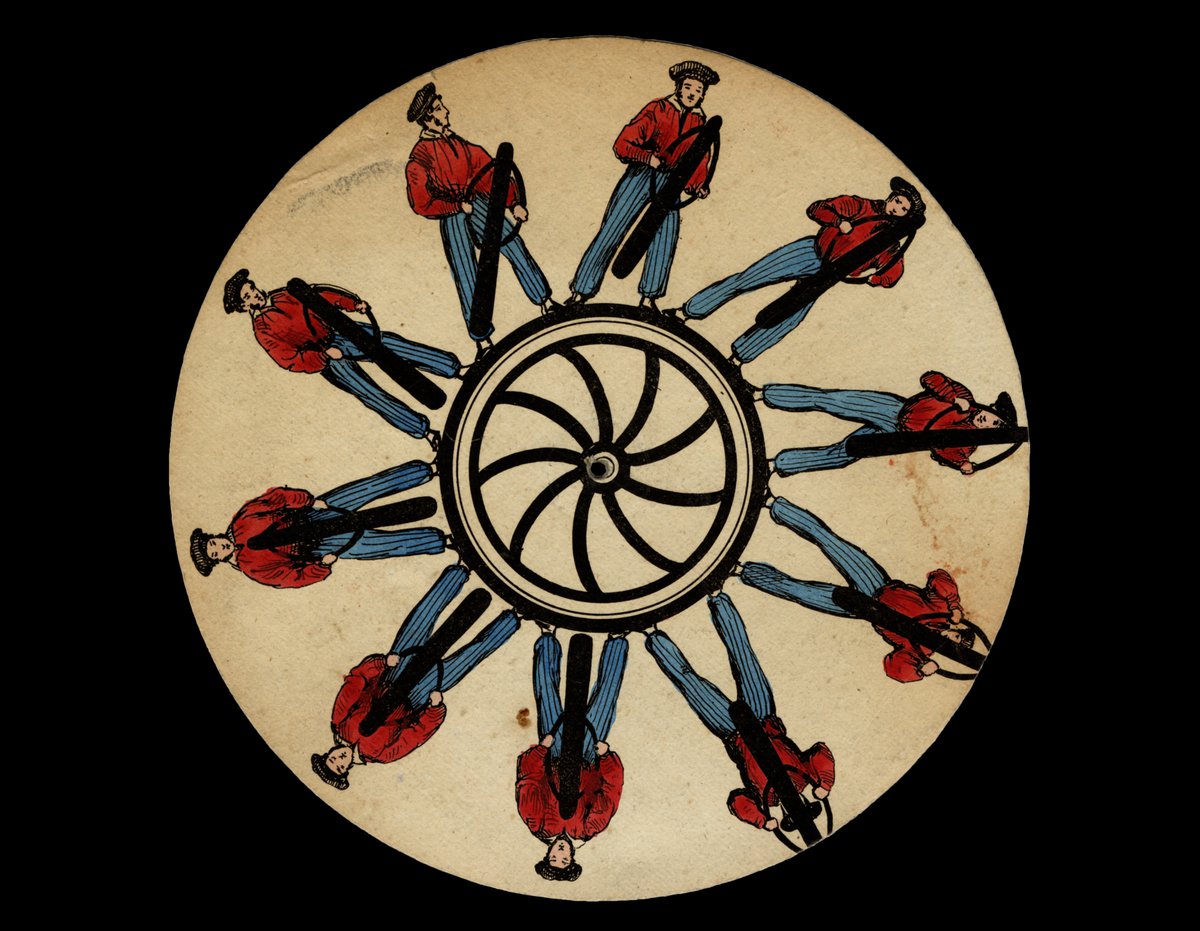 Invented almost simultaneously in 1832 by Joseph Plateau in Brussels and Simon von Stampfer in Berlin, the phenakistiscope was an important predecessor of the zoetrope, and its infinitely looping animation is reminiscent of today’s GIFs.