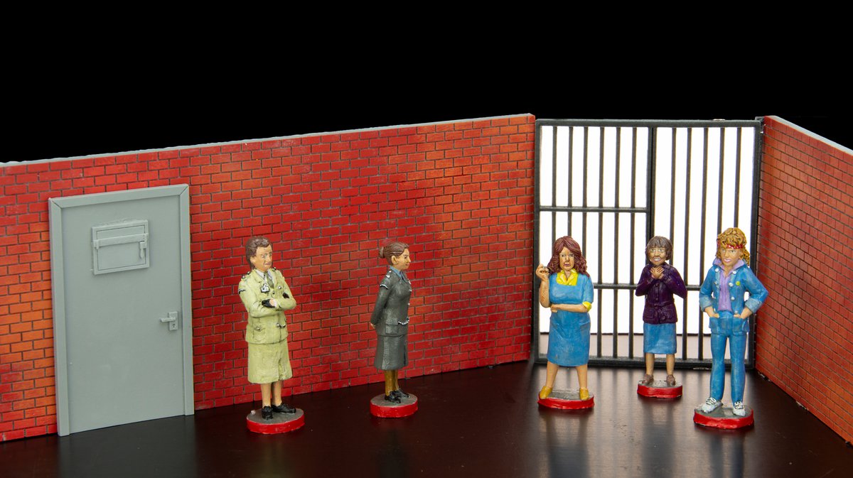 Designed and painted by ‘Prisoner: Cell Block H’ fan Greig Chambers and sculpted by Jason Miller. This set, made especially for ACMI Renewal - Moving Australia, includes figurines of characters Bea, Lizzie, Rita, Vera and Joan as well as set pieces: 2 brick wall pieces, 3 sets of bars and 1 prison door. These are not commercially available.