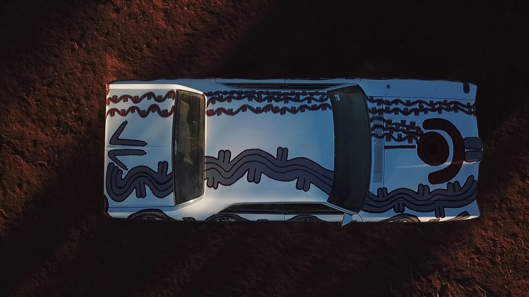 Demonstrating this winning combination of Warlpiri and car culture, Ngapa Jukuurpa (Water Dreaming) is painted on an old Ford ZF Fairlane in the series’ final episode. The Bush Mechanics drive the ‘Ngapa car’ to Broome to trade for pearl shells to use in a ceremony to break the drought.