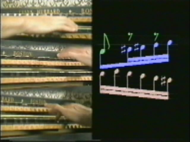 The Bachdisc marks a milestone in the treatment of musical subjects in laserdisc format. How does one add visually to something that is not only heard, but is considered to be the most subjective of the arts? Bachdisc creator, Juan Downey, incorporates onto a multiple-image screen various images of the famous New York harpsichordist Elaine Comparone playing Bach’s Fugue #24 in B minor. On side 2 of the disc is a documentary of Bach’s personal life and work.