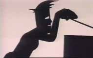 A series of talking boxes warn a cut-out figure against opening them but he persists and comes to a nasty end.