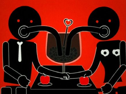 Vilakone has created powerful graphics in this animated work about the family of the future through the use of a predominantly red background, with black and white hand-drawn images. No dialogue.