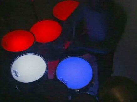 Tim and Joe enlisted the help of drummer Robin Rigoulet to create a stark, minimal, one shot performance piece with light, sound and colour perfectly synchronised.
