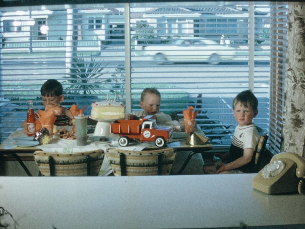 00:11:18:00 the three boys at a table set with birthday cake and party cups