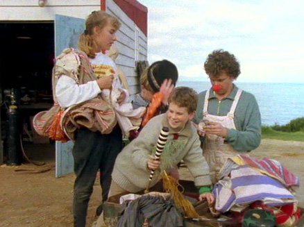 The Twists find a trunk full of old circus costumes and dress the scarecrow in a clown’s outfit. But the scarecrow comes to life and chases Linda. Fortunately Dad, dressed as a fortune teller, sees and knows all.