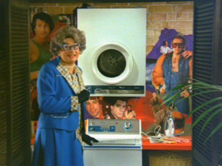 Dame Edna Everage, the housewife superstar, introduces us to the new compact washer and also the now famous tag line, ‘guess whose mum’s got a Whirlpool’.