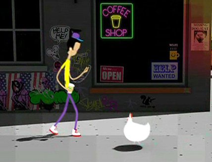 Why DID the chicken cross the road? This short animation seeks the answer in the past (1959) the present (2009) and the dystopian future of 2059.