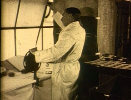 As the title suggests, ‘Telling The World’ was made for an overseas audience as was much of the Government film unit’s output. It covers the roles and functions of the Cinema and Photographic Branch and shows Bert Ive filming some of the iconic images he would capture of important Australian events and places. The opening sequence shows a meeting between the Cinema Branch’s Officer-in-Charge Lyn Maplestone and Bert Ive, who appear periodically throughout the film. Ive continued to work for the branch until his death in 1939. The film has been sepia toned, a specialised chemical treatment enhancing black and white film with a warmer tone. Some scenes in the processing laboratory are tinted red. An excellent example of the period’s documentary and innovative filmmaking techniques. Source: NFSA Film Australia Collection.