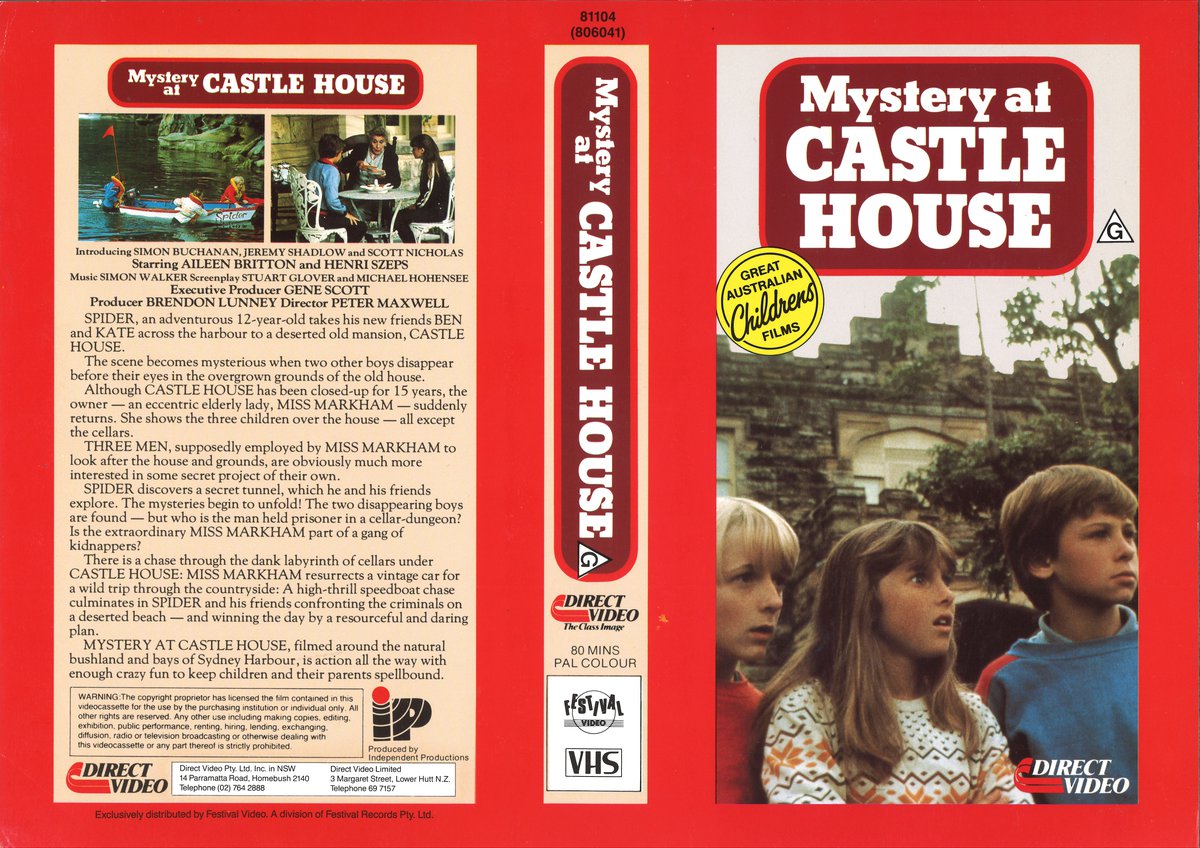 Spider, an adventurous 12 year old, takes his new friends, Ben and Kate, across the harbour to a deserted old mansion, Castle House. Two other boys disappear before their eyes in the overgrown grounds, the eccentric elderly owner suddenly returns, and Spider and his friends find a secret tunnel. Filmed around the natural bushland and bays of Sydney Harbour, it’s action all the way with enough crazy fun to keep children and their parents spellbound.