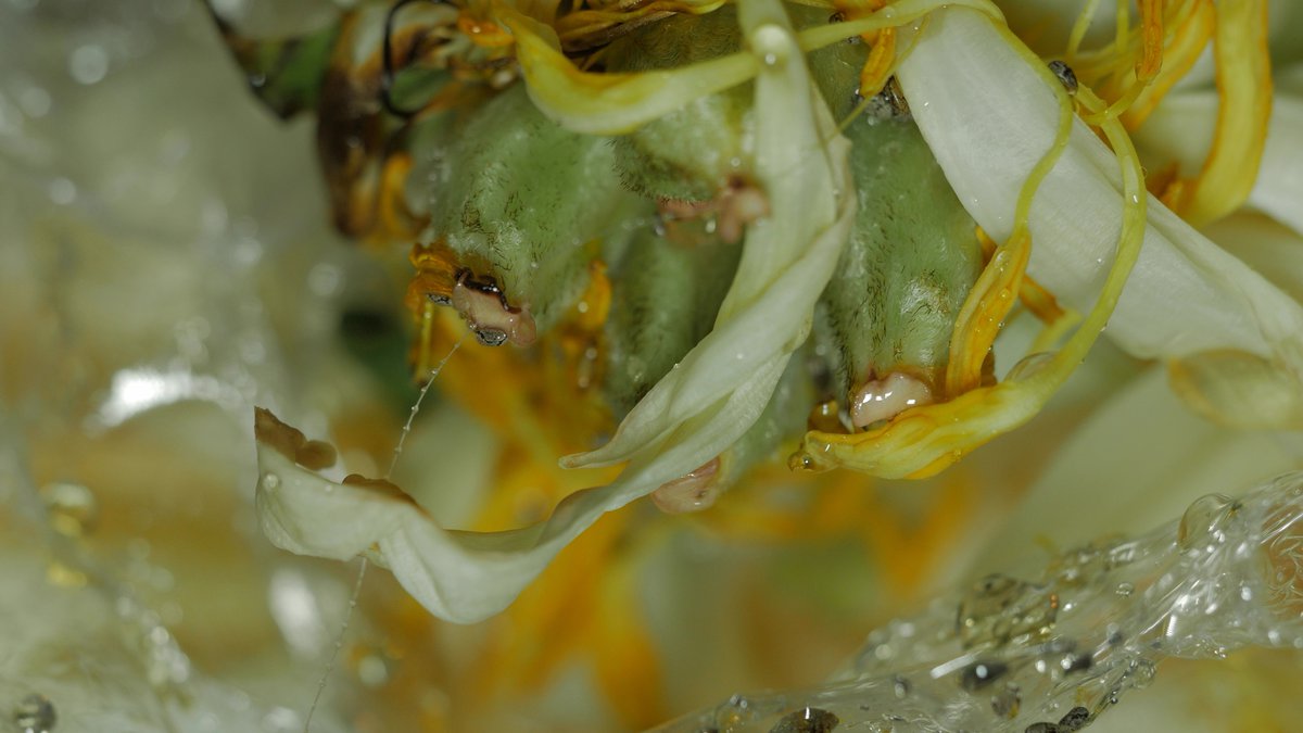 Spawn is also a work about gratitude. A filmic study of death and transformation. As golden liquid pours over rotting, spinning fruits and flowers, Duffy encourages us to ‘say thank you and rejoice in transformation and transmutation.’