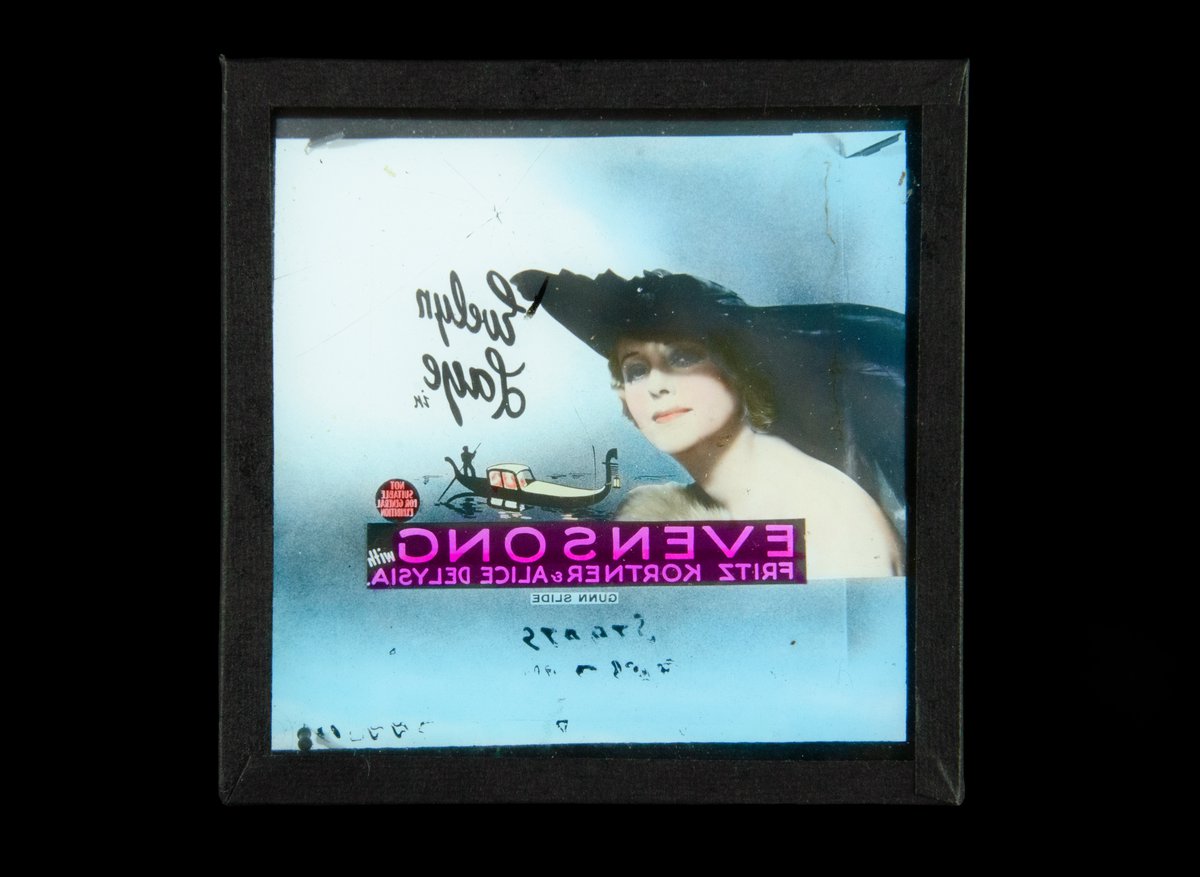 TEXT on the slide reads: Evelyn Laye in Evensong with Fritz Kortner Alice Delysia