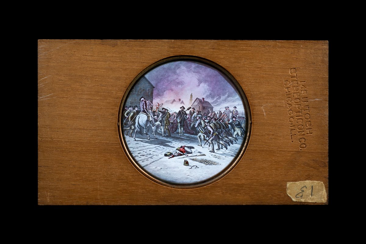 From a set of 18 ‘American History’ wooden magic lantern slides