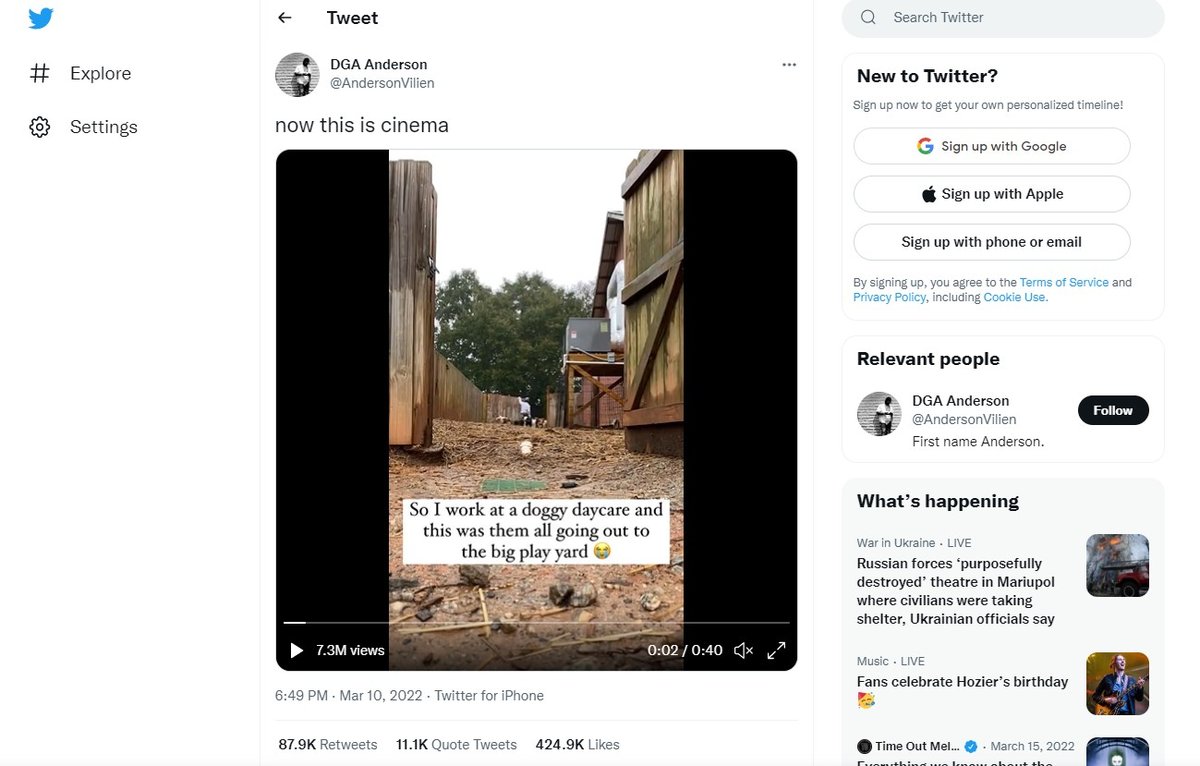 What cinematic trope is more iconic (and more replicated) than a good old-fashioned, dramatic slow-motion running scene? Combine it with a dramatic musical accompaniment (here, Wagner’s “Ride of the Valkyries” plays that role to perfection) and an eyewatering number of cute dogs, and you have the recipe for the perfect viral pet video - one that ends, fittingly, in glorious chaos.