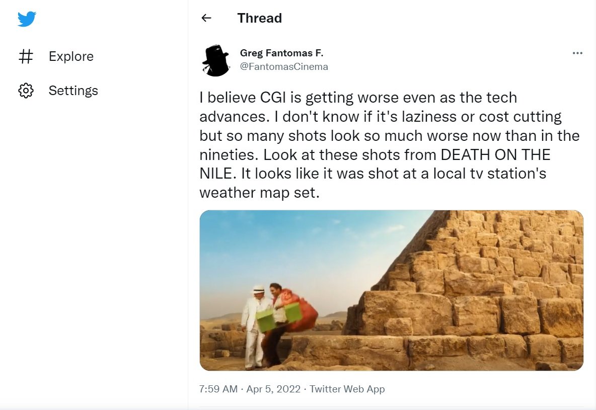 Streaming site Hulu’s long awaiting movie Death on the Nile has gone viral as viewers question the quality of the CGI. Based on an Agatha Christie novel, the murder mystery is set in 1930s Egypt but was predominately shot in the UK. Clips of the worst offending scene have been shared online and retweeted almost 9,000 times, with viewers likening the special effects to low budget productions of the 1990s. Some defended its use, explaining that it was made at the height of the pandemic when people couldn’t travel, while others wondered if it was a ‘stylistic nod’ to the sound stages of Old Hollywood.