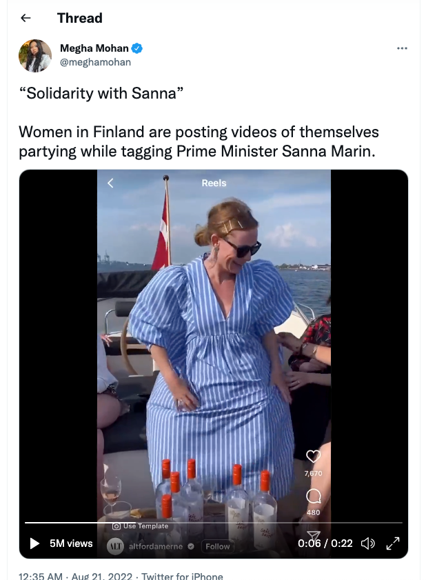 Finnish Prime Minister Sanna Marin has faced intense media scrutiny and criticism from political opponents since footage of her dancing with friends was leaked on social media. In defiance of the fuss, women in Finland have been sharing videos of themselves partying in solidarity, creating a viral groundswell of support for the world’s youngest head of state. Marin has defended herself publicly against speculation that dancing and drinking in private undermines her professional position. The positive response and support on Twitter and TikTok has effectively turned a negative social media experience – having the video leaked – into one of empowerment.