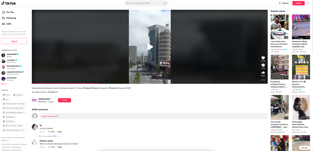 While posted alongside other videos of the event, this one is a building in Japan losing its scaffolding several years ago. Unlike traditional news media, where journalists are trained to check their facts, social media responses to disasters may be immediate but they can also be inaccurate. On the upside, some people who were trapped in collapsed buildings in the earthquake used social media to alert friends, family and rescuers to come to their aid. This video was removed a couple of days after being posted.