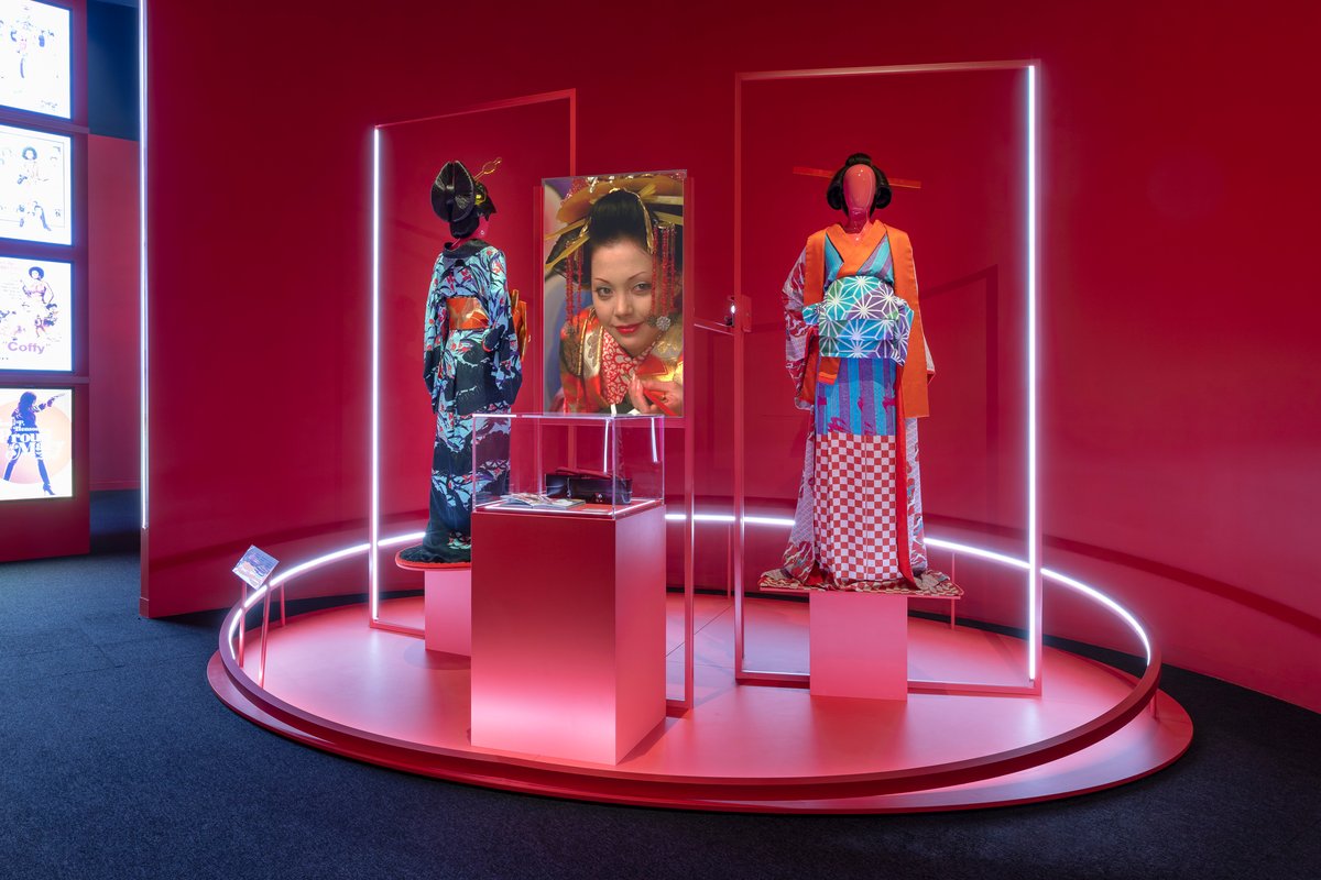 The colourful kimonos displayed in Goddess bring the vivid artistry of Moyoco Anno’s original manga to life in director Mika Ninagawa’s adaptation of Sakuran (2007). Costume designer Yuko Sugiyama emphasises hallucinatory colours and patterns, using traditional Japanese dyeing techniques to give the kimonos period-accurate authenticity with a punk rock sensibility. Highly detailed and ornate, they are vital to the film’s visual style and the emotional journey of the characters.