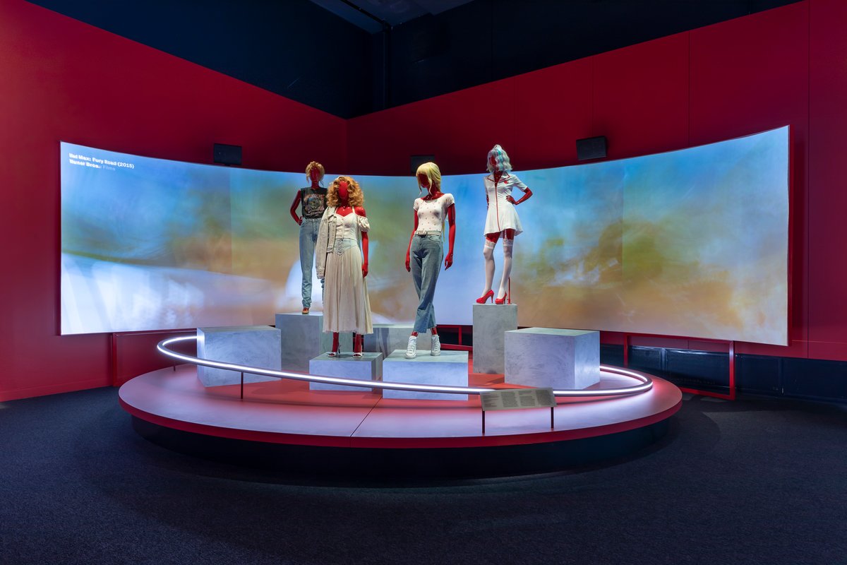 Thelma (Geena Davis) wears the lacy ivory top, skirt and embellished denim jacket, displayed in Goddess, at the start of Thelma & Louise (1991), when she hits the road with her best friend. The pieces are highly feminine and frame her as a bootscooting Southern belle. After Thelma is plied with tequila and assaulted, her adventure is derailed and her life is at a crossroads. When Louise (Susan Sarandon) avenges her, Thelma embraces life as an outlaw, represented by the grungy shirt and jeans. Read an interview with Geena Davis and Goddess curator Bethan Lloyd Johnson in The Age. The predatory behaviour of men in Thelma & Louise is exactly the behaviour that Cassie (Carey Mulligan) exposes in Promising Young Woman (2020). Like Louise, Cassie takes the law into her own hands to get justice for a friend who has been assaulted. She hides her quest for revenge behind a cupcake-pink palette that satirises expectations of femininity found in romantic comedies. By the time she strikes, she’s transformed the male fantasy of a buxom nurse into a nightmare. Unlike Thelma & Louise’s gritty, cowboy aesthetic, Promising Young Woman shows that, 30 years later, women no longer need to shed their femininity to find strength. Read an interview with Promising Young Woman director Emerald Fennell Read an interview with Promising Young Woman costume designer Nancy Steiner on the subversive costume design Taking control The anti-heroes in Thelma & Louise and Promising Young Woman seek their own justice because they know they won’t be heard or believed. The end of both films signifies the justice system’s failure to protect or empower women under patriarchy; they have no recourse to be heard, believed or seek justice. Instead, they’re forced to operate outside the bounds of society. The characters on the Taking control screen in Goddess similarly fight back to redress society’s indifference, avenge oppression and take a stand, joining a cinematic tradition that stretches from gritty exploitation films like Foxy Brown (1974) and Ms .45 (1982) to today. When Thelma & Louise was release in 1991, it faced a wave of controversy. The central characters, portrayed by Geena Davis and Susan Sarandon, go on the run from the police after shooting a man who assaulted Thelma outside a bar. While suitably remembered mostly as a feminist road film, it also falls into the rape-revenge genre. Ms .45 does too and like Thelma (Davis) embracing a grungy look when she becomes an outlaw, costuming is important to this transition. After being raped twice, Thana (Zoë Tamerlis), a mute seamstress, takes the law into her own hands in Ms .45. In Thana’s case, she literally cannot be heard, so she lets her .45 calibre pistol speak for her. The intimacy that her trauma has taken from her is transported into her weapon – while loading her gun, she kisses the bullets, blows on the barrel and blows a kiss in the mirror she’s just practised her aim in, which is a gendered inversion of the famous mirror scene in Taxi Driver (1976). She is bidding her former self goodbye, donning a nun’s habit to transform into a symbol of divine feminine justice. But her costume is also highly sexualised, representing the male expectation (and male gaze) to make any Halloween costume ‘slutty’. Yet like Cassie (Carey Mulligan) in Promising Young Woman, who dresses as a buxom nurse in that film’s climactic scene, Thana turns the fantasy into a nightmare. Ms .45 is the definition of an exploitation film, but in its own way reflected the women’s liberation movement. The cult classic subverted the traditional revenge thriller like Death Wise and Taxi Driver by casting a woman as the vigilante. Eight years earlier, government agent Cleopatra Jones (Tamara Dobson) takes down a drug operation in LA’s seedy underbelly in the Blaxploitation classic Cleopatra Jones (1973). Though her main object is disrupting the drug syndicate, in one scene Cleopatra intervenes when a gang of men are assaulting a woman in an alleyway. This scene is juxtaposed in Goddess with two scenes from Foxy Brown: one showing Foxy (Pam Grier) chasing down a drug lord in a grounded airplane with the propeller spinning and the other showing Foxy circling enemies in a martial arts stance. The latter reflects the connection between Blaxploitation films and martial arts films – people of colour, using only their innate physicality and abilities to overcome authorities (usually White) and overwhelming odds. A common trope in cinema is a physically smaller character using martial arts to overpower a larger one. In many on-screen instances, this scenario is gendered, with the smaller character a woman and the larger male. The women characters’ strength and skills deny the misogynistic expectation of their fragility. In Goddess, the circling Foxy Brown scene is juxtaposed with both La Femme Nikkita (1990) and Mardaani (2014) to illuminate this trope. Though Blaxploitation films were criticised for being violent, explicit and perpetuating stereotypes, they also reflected the Black Power and women’s liberation movements, offering a chance for Black stars to receive top billing in action movies. Despite the criticism, before these strong and sensual Blaxploitation characters took the law into their own hands, it would’ve been uncommon to see a Black woman piloting a plane or racing cars like Cleopatra Jones. This kind of high-octane action, particularly in Cleopatra Jones, is honoured in Grindhouse: Death Proof (2007), Quentin Tarantino's exploitation homage, which features New Zealand stunt woman Zoë Bell hanging from the hood of a speeding car while Rosario Dawson cheers her on from inside. By the time the oil wars destroyed the world and Furiosa (Charlize Theron) took over saving the wasteland in Mad Max: Fury Road (2018), women on-screen were driving war-rigs while blowing up their enemies. Perhaps the most iconic Blaxploitation character is Pam Grier’s Coffy (1973