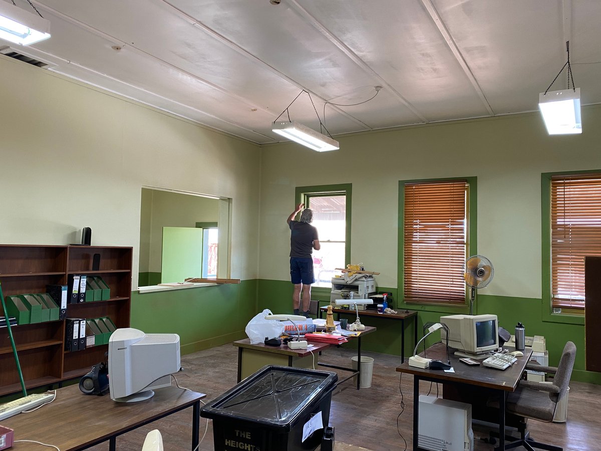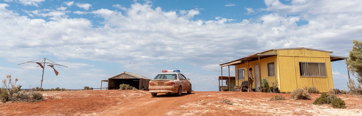 Set in 1999 in an outback mining town, production designer Herbert Pinter built several sets, including the police station and Jack Swan’s home, to faithfully recreate the period’s atmosphere, and included set dressing details that signal the time period and values of each space. In the police station, a portrait of John Howard hangs on the wall, a sign of the local police force’s conservative values. Jack’s weatherboard house is filled with medium-stained wooden furniture that was popular in the period.