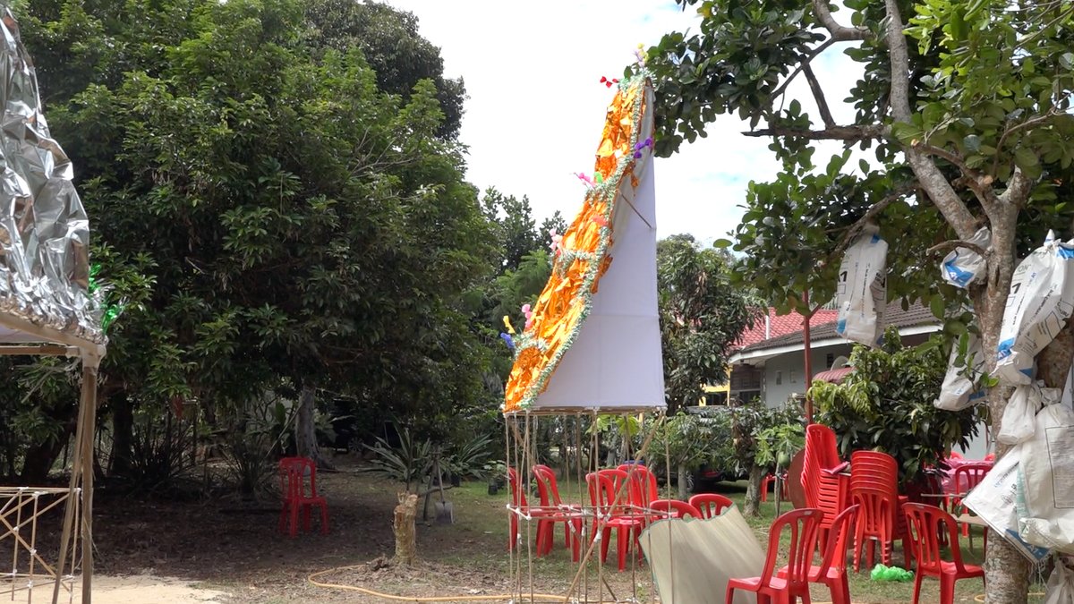 Minyak Sawit Keluarga (Palm Oil Family) by artist Olivia Koh, examines her paternal family’s history of farming practices in rural Southern Malaysia (Peninsula). Footage of domestic-scale palm oil plantations in Johor is interspersed with visual and auditory recordings of funerary Daoist rituals, documents and interviews that consider the palm oil industry and relevant history of migration in the local area.