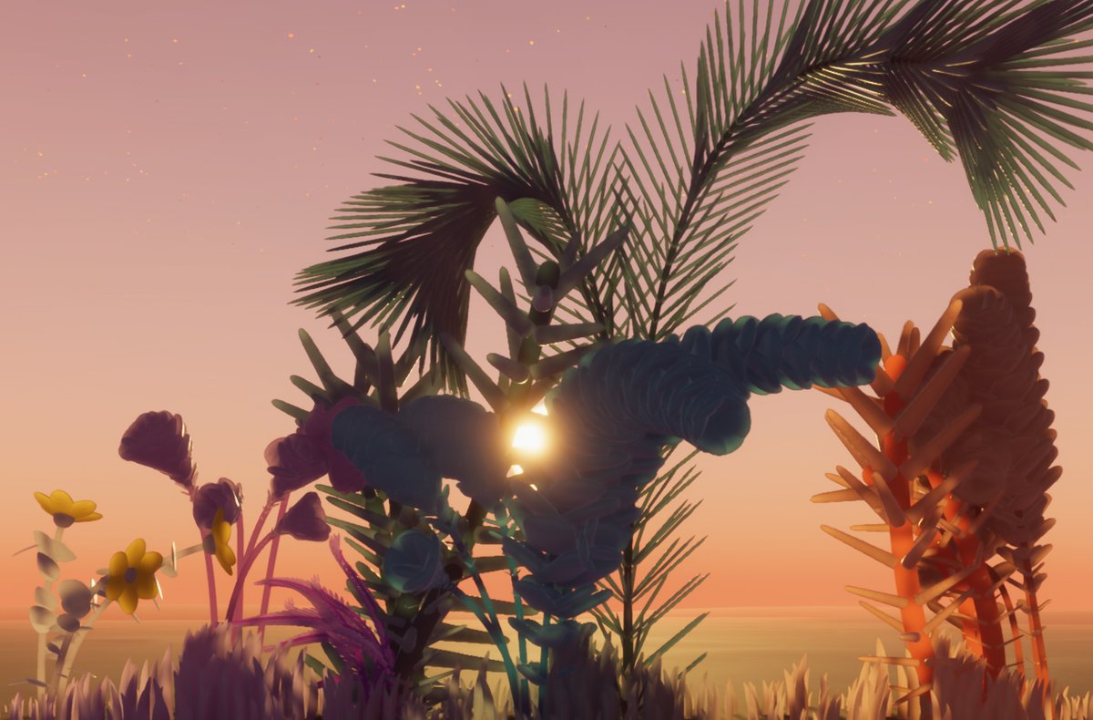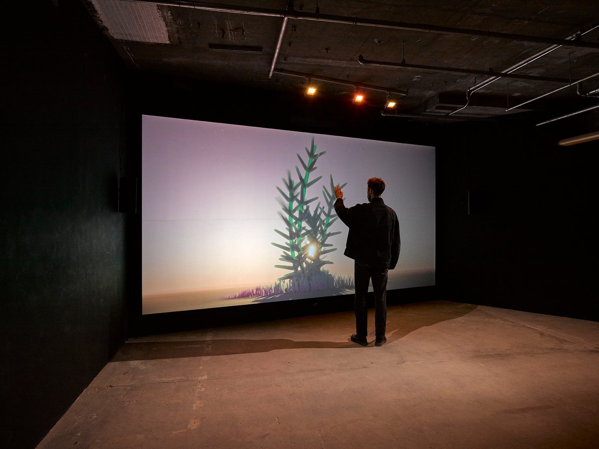 Make this natural landscape come alive just by interacting with it. Once you enter the space, plants mimic your gestures to germinate and grow, leaves lean towards you and flowers blossom, obscuring the warm digital sun.