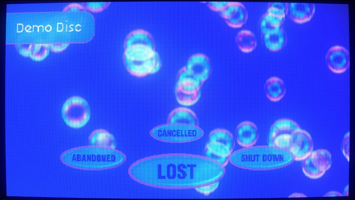 The work opens with a 'Demo Disc” sequence: flickering boot logos, buggy start-up screens, and empty disc menus. These fragments conjure lost futures and games that never were. The visuals are accompanied by the original start-up sounds – the GameCube’s cheerful toll, the Dreamcast’s hum – creating an uncanny sense of presence for worlds that existed only for a short time in gaming history. The GameCube start-up chimes give way to a PlayStation 2 logo, and the Dreamcast sound heralds the Xbox logo. These sonic and visual juxtapositions highlight the effort and risk inherent in game development. Even massive studios, platforms and consoles face the same precarious balance as the games themselves.