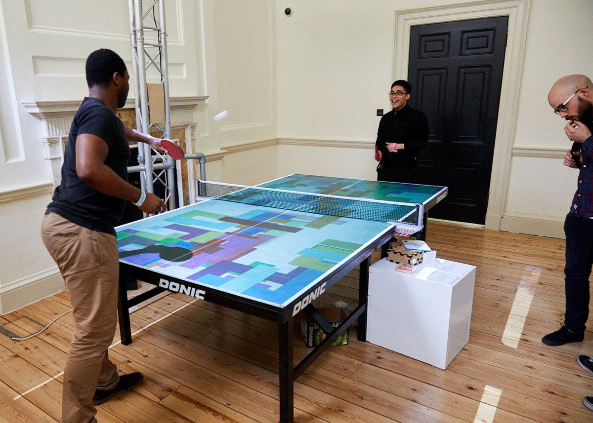 The Art of Ping Pong, by Bristol based artist Jono Sandilands, utilises projection mapping of a ping pong table to record player interactions and create multimedia art installations.