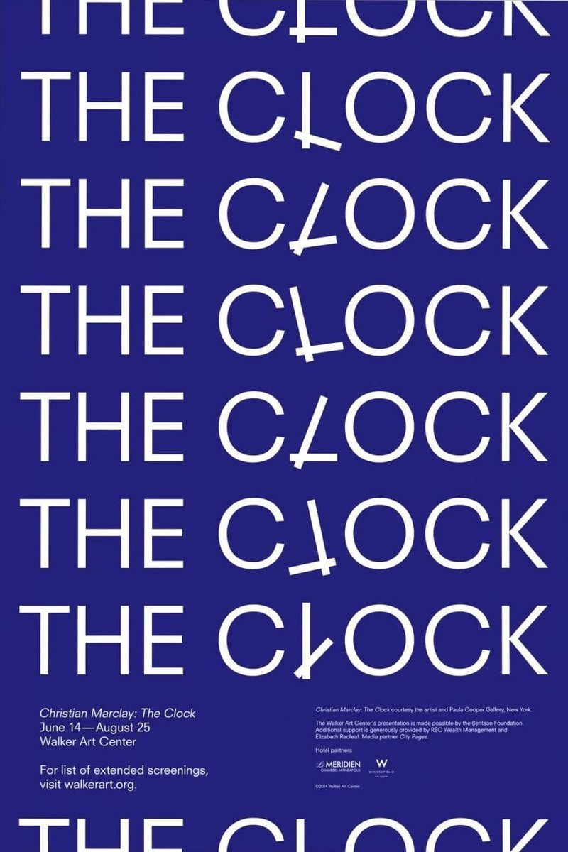 A 24-hour compendium of time-themed film clips, all synched to the time that appears on the clocks and watches within.
