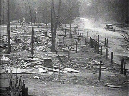 Depicts the devastation caused by the notorious ‘Black Sunday’ bushfires of 1926, that wiped out the south-east of Victoria.