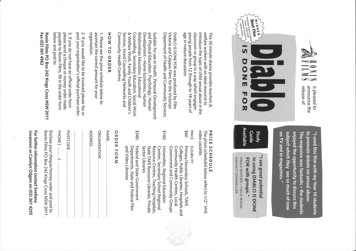 This is a drama about child sexual abuse. All is not right at Ray’s home where he is no longer able to tolerate his father’s sexual abuse of his young brother Mikey. With the support of his friends and teacher, Ray finally takes a stand against his father. This is a non-explicit film about child sexual abuse suitable for secondary students.