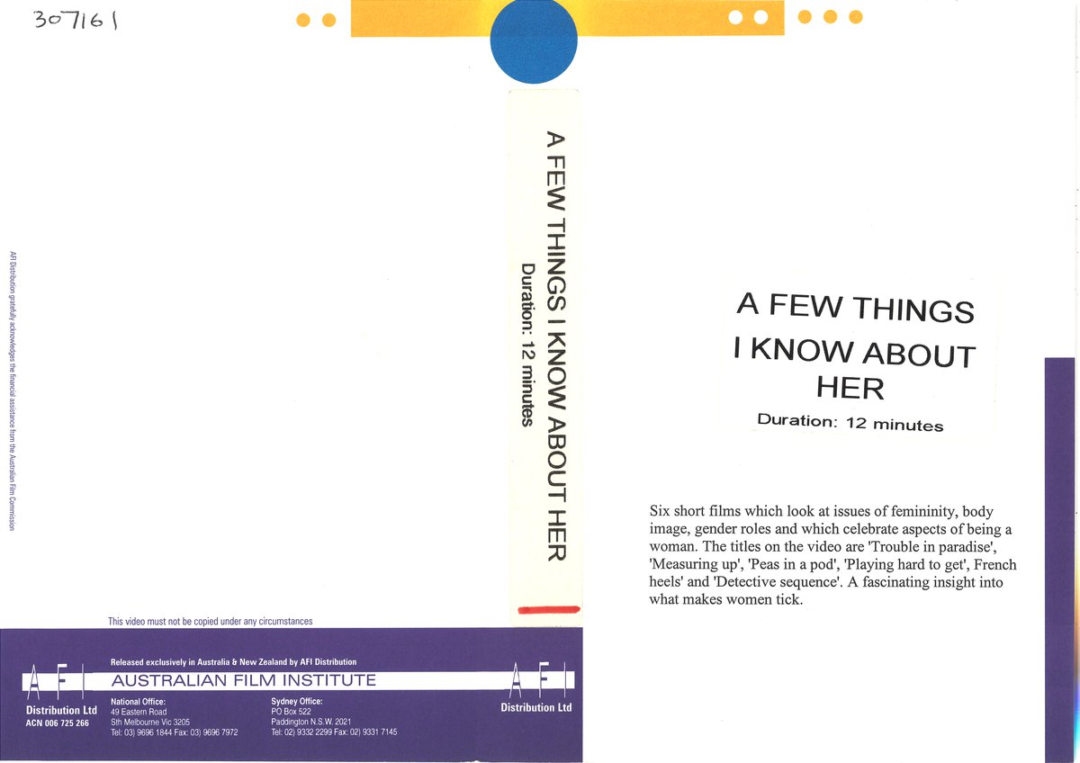 Six short films which look at issues of femininity, body image, gender roles and which celebrate aspects of being a woman. A fascinating insight into what makes women tick.