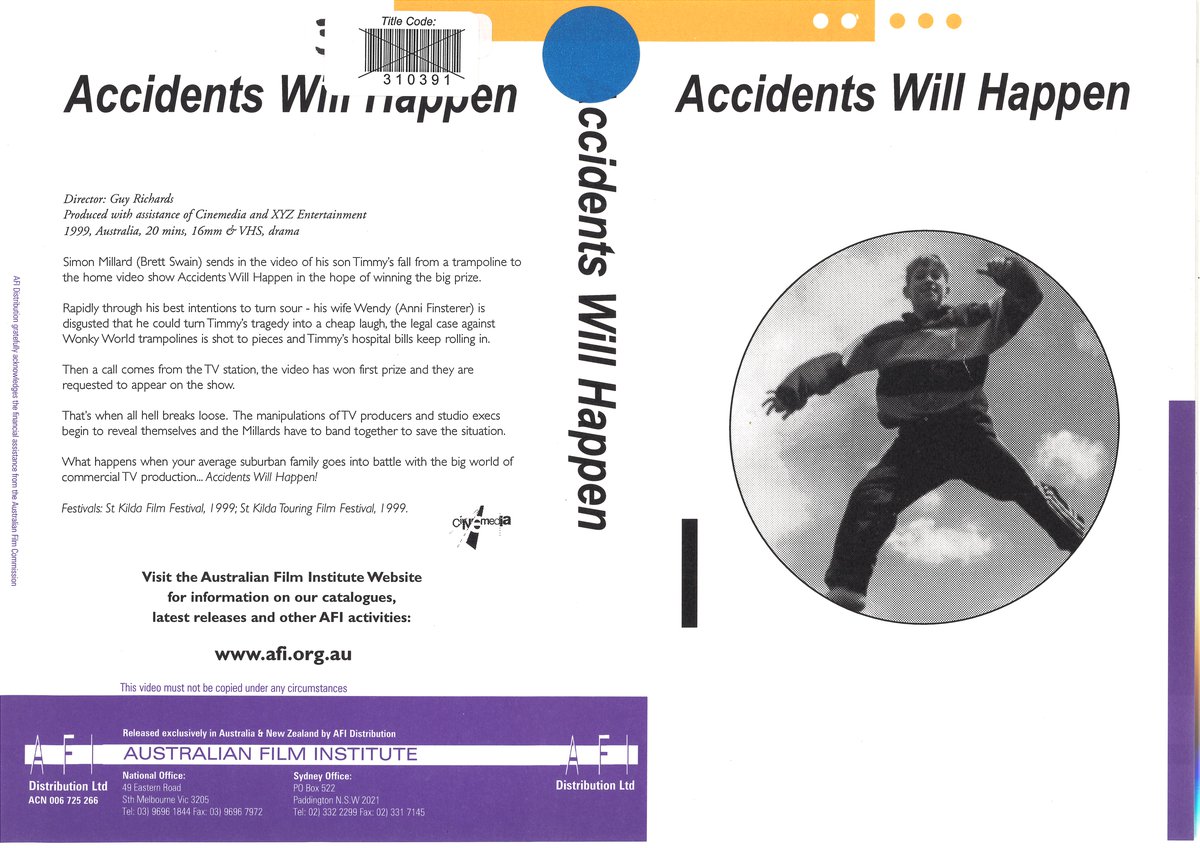 In an attempt to pay his son’s medical bills following an unfortunate accident, a father (Brett Swain) sends in handicam footage of Timmy’s mishap into the reality show, “Accidents will happen”. His wife (Anni Finsterer) is bitterly disappointed, but makes the journey into the studio with the family when they are in contention for a financial benefit. When the production crew discover the faux accident has resulted in Timmy becoming wheelchair bound, they send down an executive (Chris Haywood) to reneg the claim and all appears to be lost. A timely tale about reality television that featured as part of the St Kilda Film Festival and Touring Film Festival, 1999. Cast also includes Michael Barrallon, Emily Barr, Alan Dale and Tania Lacy.