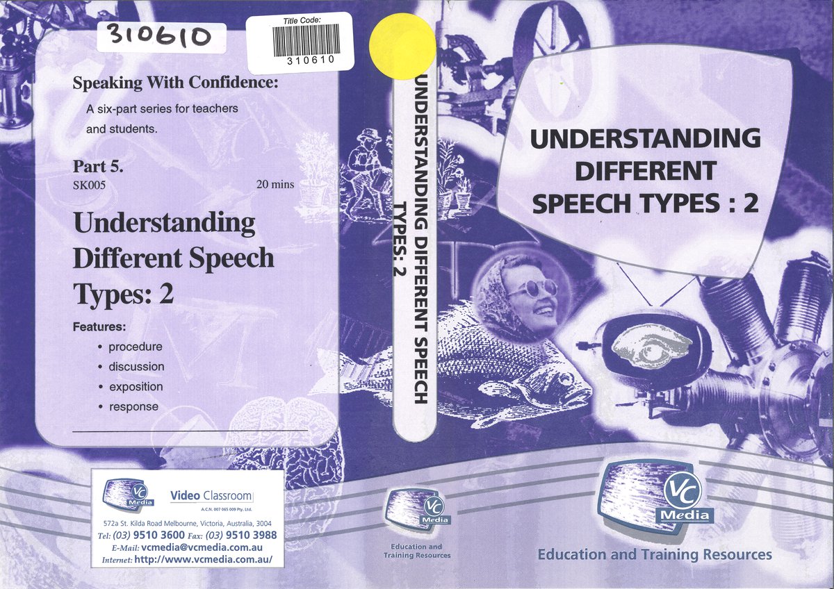 This tape covers the different speech types of the procedure, the discussion, the exposition and the response. A sheet providing suggested exercises as well as a speaking checklist (covering areas such as was the talk clear, purpose defined, speech rate and clarity etc) accompanies the video. Presented by Brian Tickle.