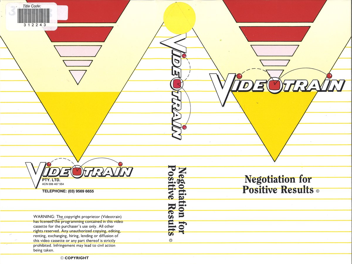 A training video with accompanying trainer’s manual that provides techniques to aid people in the workplace in developing a positive and bias-free approach to negotiation. The program takes participants through the steps necessary for a thorough approach to negotiation, a process that considers both parties in arriving at a result of mutual benefit. It stresses the need to consider the environment in which negotiations take place, and to ensure that all elements of prejudice are put aside.