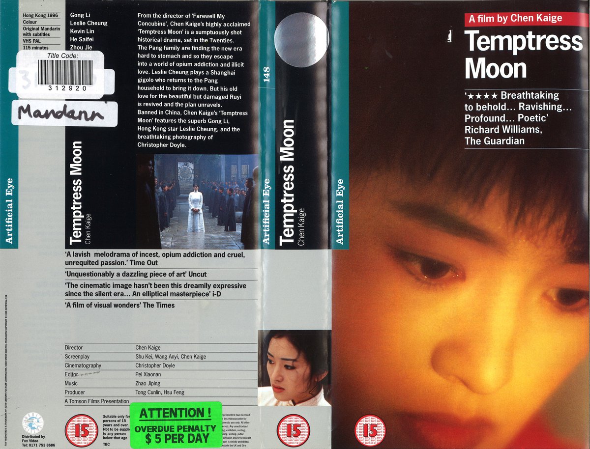 Set in 1911 in Shanghai, during a time of political upheaval following the fall of the last emperor and the proclamation of the Republic, ‘Temptress Moon’ follows the slow downfall of the Pang family, a once rich and powerful clan slowly sinking into anarchy and opium addiction. Zhongliang (Leslie Cheung), an orphan boy, is introduced into the Pang family by his sister who is married to the heir of the family. In order to earn his keep, he is employed as a servant, his special duty looking after the opium pipes of his master. Following years of mistreatment, Zhonliang runs away to Beijing where he joins a gang run by Biggie. In Beijing, Zhongliang plies his trade as a gigolo and blackmailer. When news reaches Beijing that the Pang family has passed on the reigns of the estate to a a woman, Ruyi (Gong Li), and a cousin, Duanwu (Kevin Lin), Biggie sends Zhongliang back to Shanghai to seduce Ruyi and take over the estate. As Zhongliang infiltrates his way back into the Pang family, his childhood passion for Ruyi is revived and he finds it near impossible to carry out his mission. According to Chen Kaige, ‘Temptress moon’ can be seen as pure psychological drama, a film on male domination and hierarchy in China at that time, or as the story of a girl becoming a woman. But what mattered to the director was to produce a film on contemporary China, in spite of the historical setting. The film encountered many obstructions from the Chinese authorities due to its matter-of-fact depiction of sex and drug use and its barely masked reference to current political issues. In Mandarin with English subtitles.
