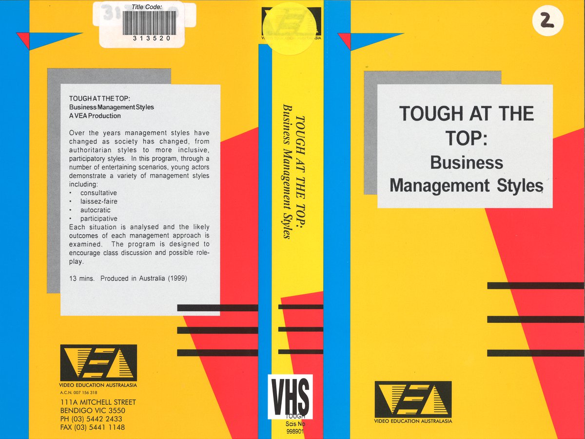 This program features five short acted scenarios demonstrating different business management styles. Each situation is analysed and the likely outcomes of each management approach is examined. Also highlighted is the issue that each manager is different and that no manager uses only one of these styles - they adopt different styles based on the circumstances of each situation faced. Management styles discussed include: consultative; laissez-faire; autocratic; participative and persuasive. Video support notes included. Suitable for Mid-Upper Secondary students.