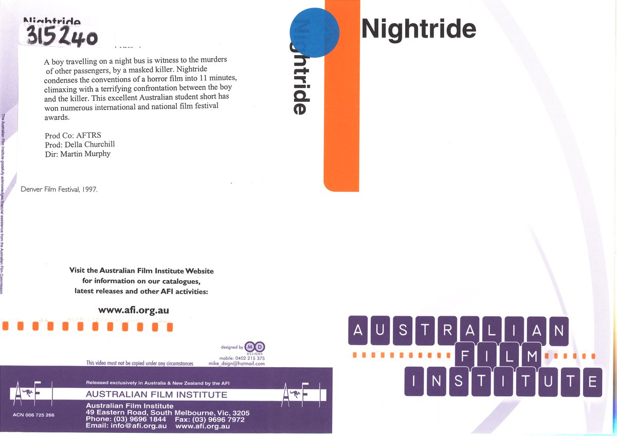 A boy travelling on a night bus is witness to the murders of other passengers, by a masked killer. “Nightride” condenses the conventions of a horror film into 11 minutes, climaxing with a terrifying confrontation between the boy and the killer. This excellent Australian student short has won numerous international and national film festival awards.