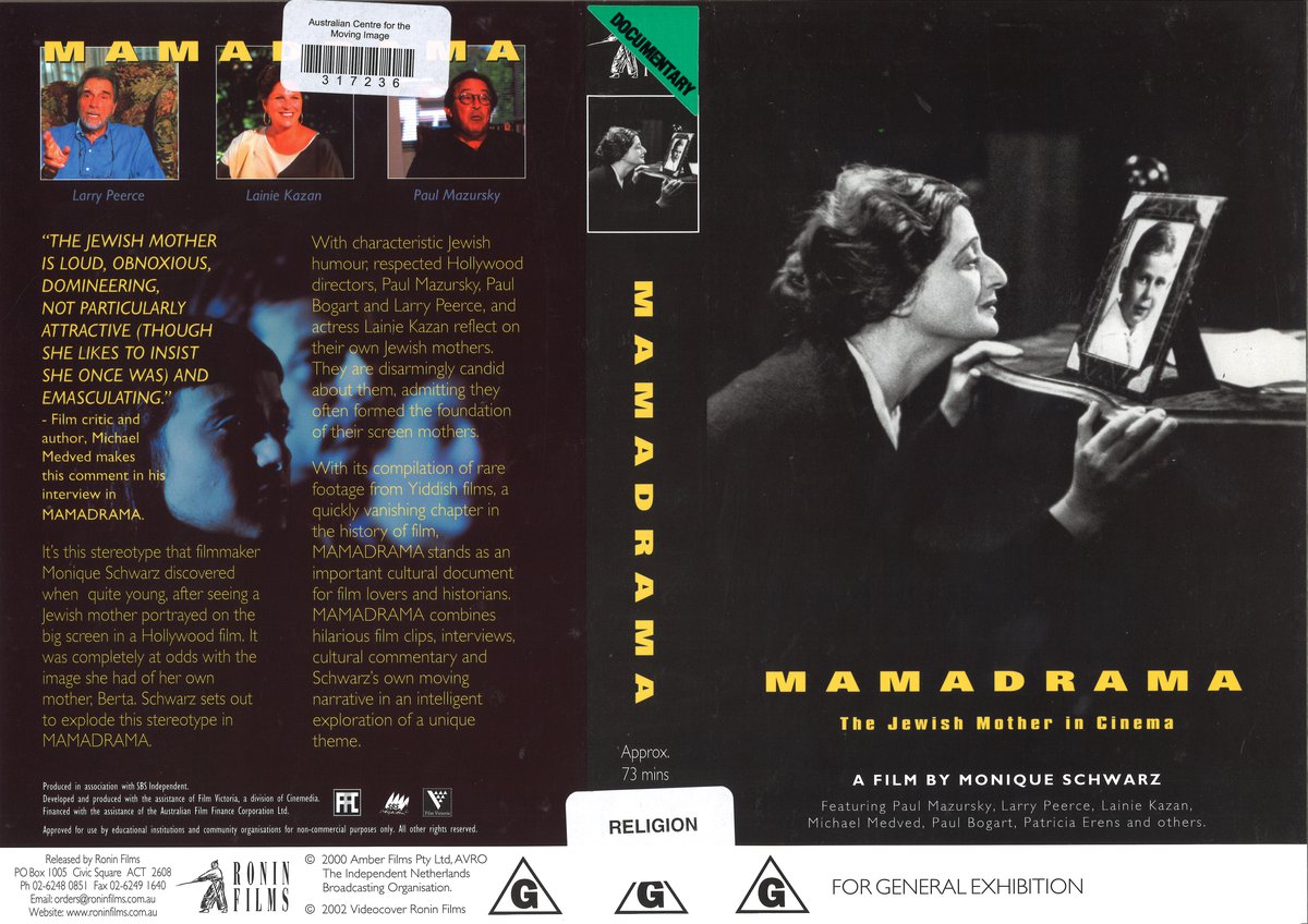 An Australian documentary examining the portrayal of Jewish mothers on the big screen. From an early age filmmaker Monique Schwarz was puzzled by the discrepancy between the domineering and emasculating Jewish mothers typically represented on film, and her own mother, a Holocaust survivor. “Mamadrama” consequently has a strong personal touch, via the reflections of Schwarz and interviews with directors Paul Mazursky, Paul Bogart, and Larry Peerce, and actress Lainie Kazan. In addition to well-known Hollywood movies “Mamadrama” uses rare footage from early silent films, Yiddish language features and Israeli films. The tone of the documentary is reflective rather than critical; the most intriguing moments emerge from the candour with which the interviewees discuss their own mothers.