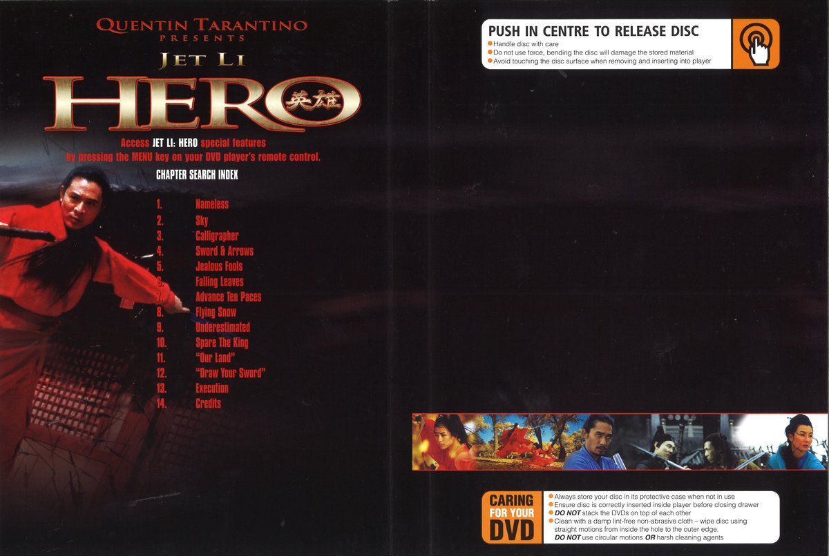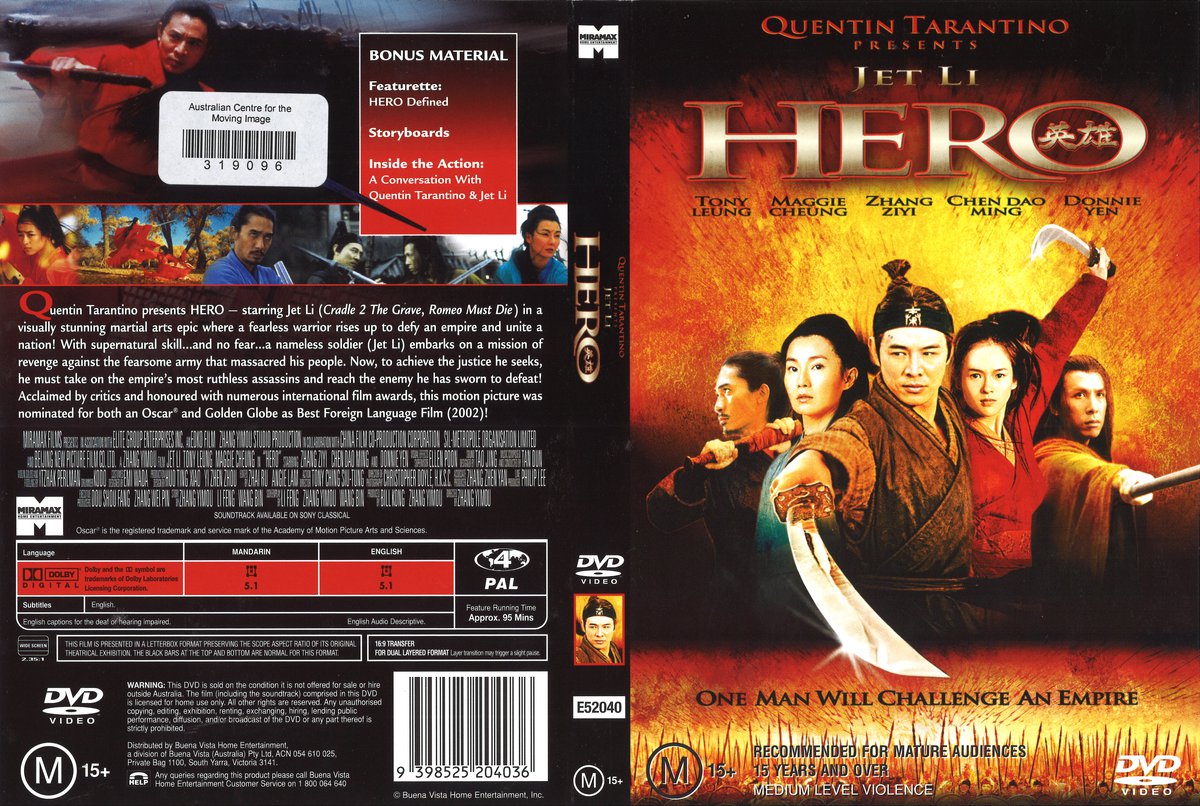 Famed director Zhang Yimou delivers a spectacular martial art masterpiece that, in the style of “Roshomon”, presents a tale from numerous perspectives. Set during the Warring States period (when China was divided into seven states) the film supports various strands - a nameless soldier (Jet Li) embarks upon a dangerous quest to avenge his massacred people; a lone female warrior seeks to match the exacting standards of her master; two legendary assassins, who are also lovers, play out their final act. The graphics and set pieces of the film rival those of “Crouching tiger, hidden dragon”, being quite spectacular in nature, with an outstanding colour palette, depicted thematically. Highlights are the female warriors fighting in an autumnal forest, a lakeside showdown and the mountain top finale for the lovers. Bolstered by a top cast (Jet Li, Maggie Cheung, Tony Leung, Zhang Ziyi) Yimou creates an exciting addition to the wuxia genre, whilst sustaining a lyrical, romantic and elegiac tone.