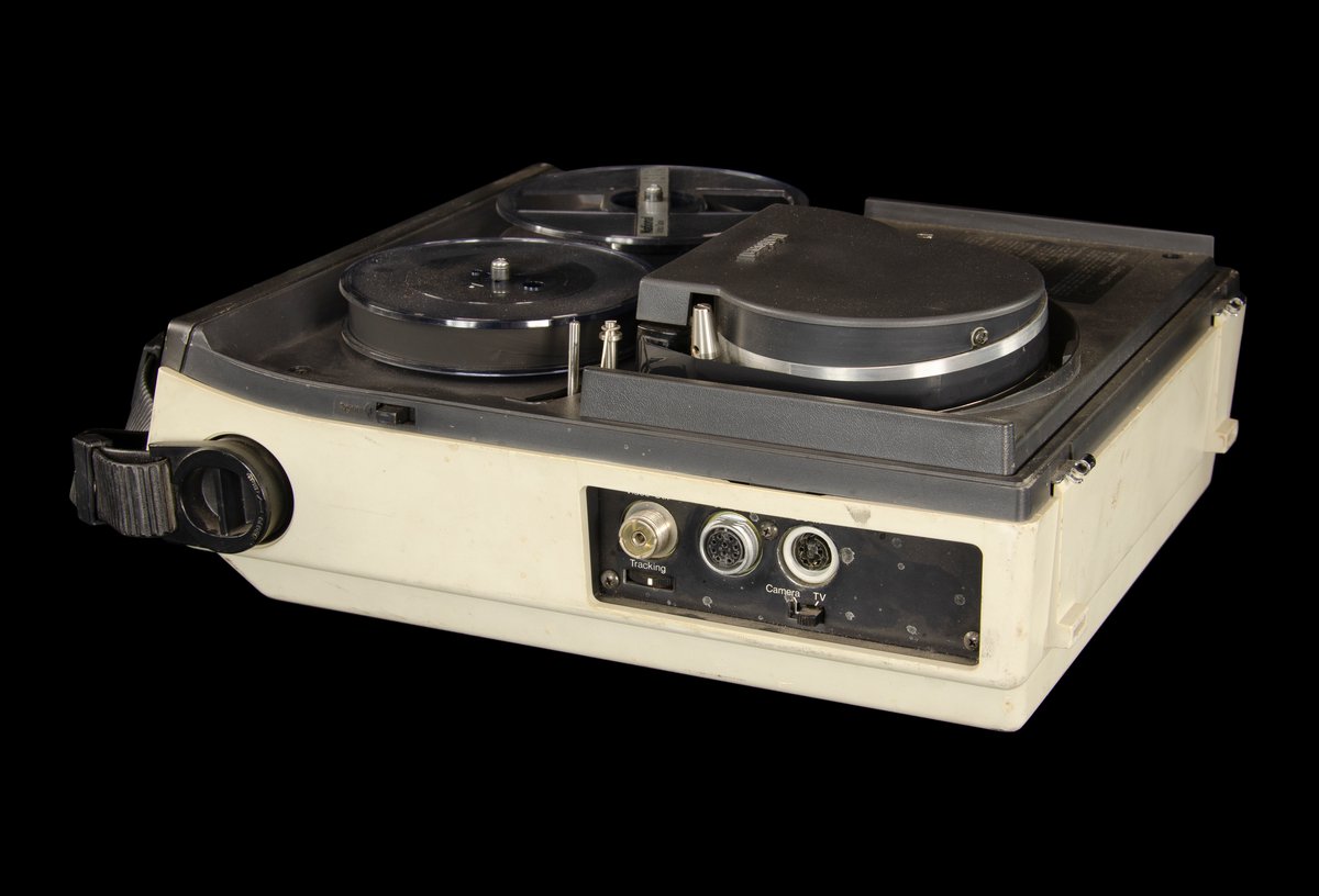 Portable reel to reel sound recorder. Heavy, comprised mostly of metal and plastic. Used in tandem with National Panasonic Portapak WV 3085 camera to record sound.