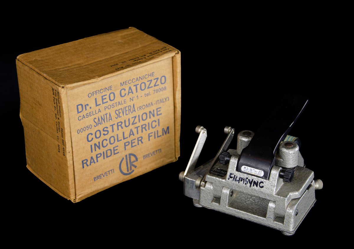 The splicer, afterwards simply know as the “Catozzo”, was born as a result of a serious form of allergy to the smell of the cement suffered by his inventor which produced the happy intuition to use adhesive tape in its place, for joining the various film ends together.
