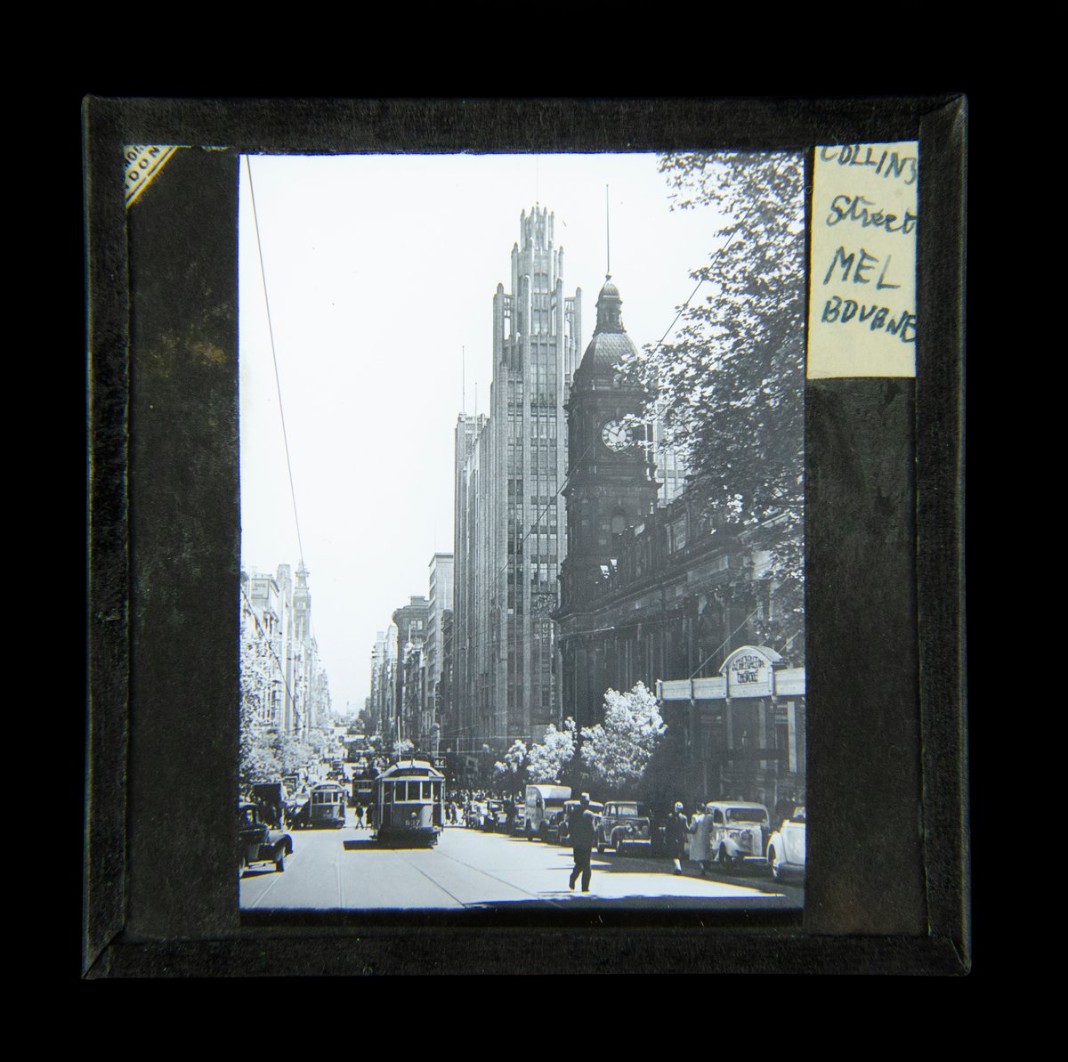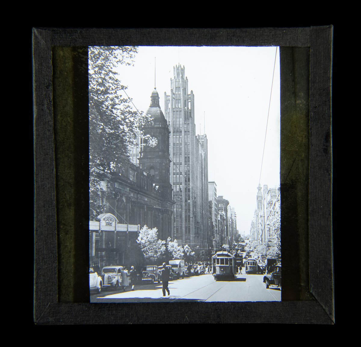 Magic Lantern Slide. Collins Street Melbourne c1949 photo Australia trams