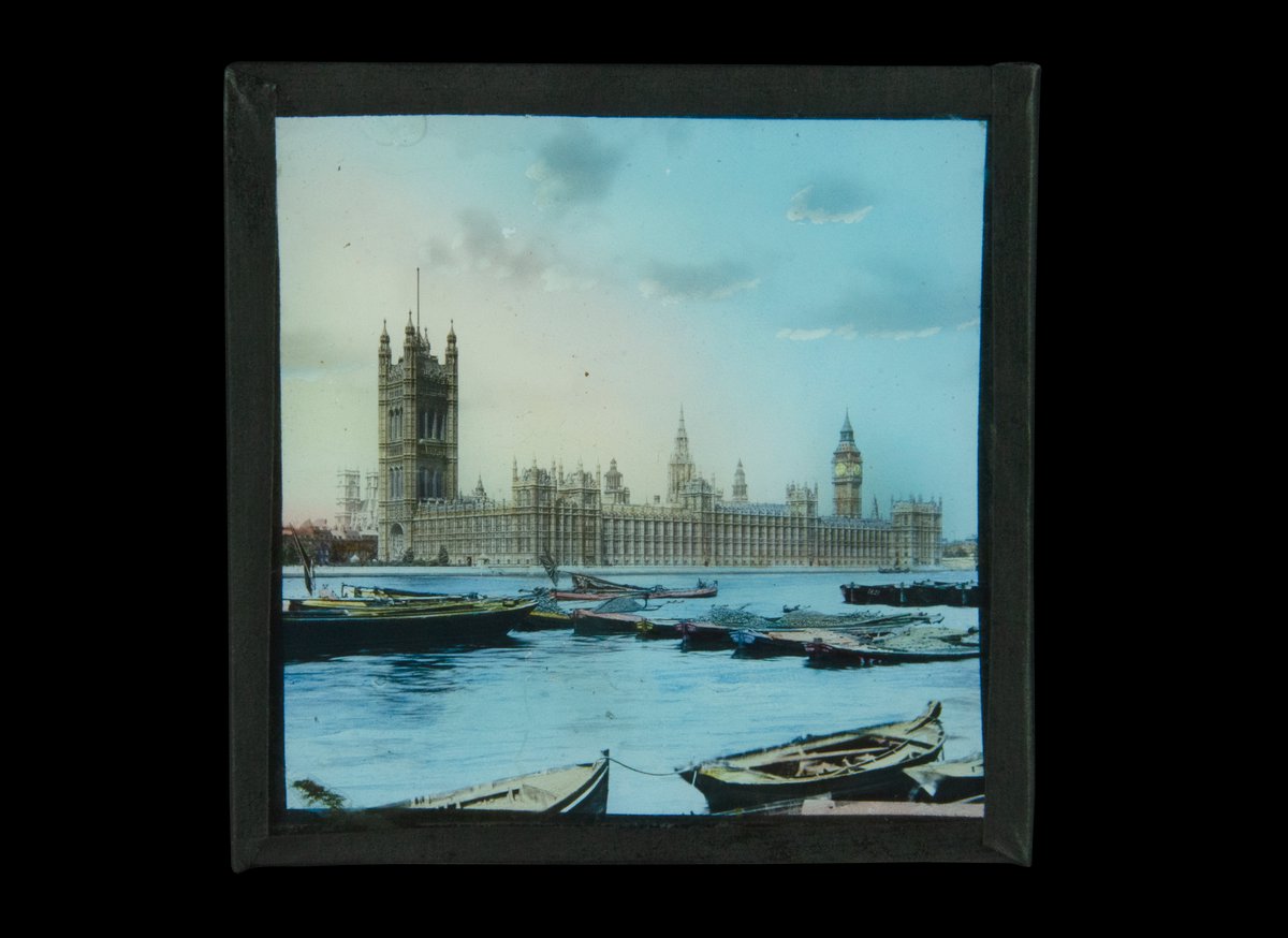 Magic Lantern Slide. Houses of Parliament London c1890 old Victorian photo