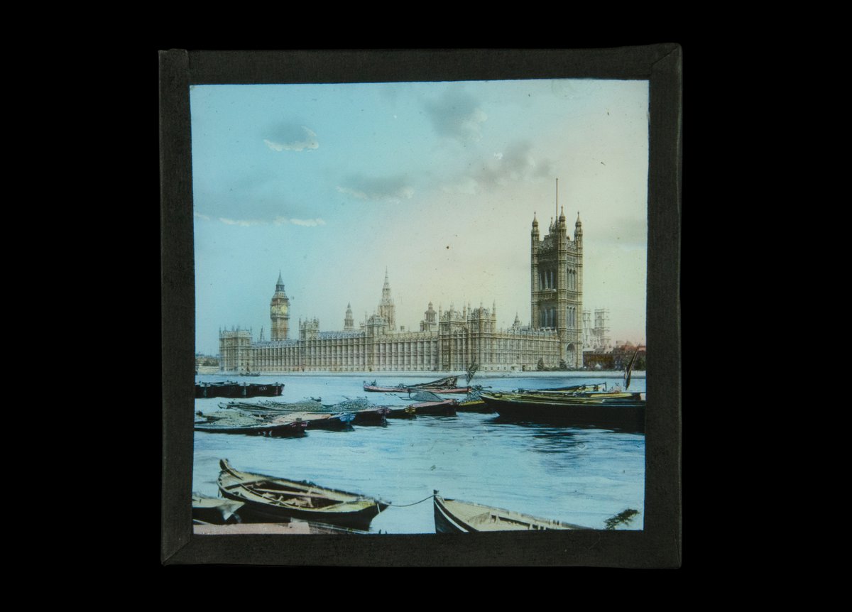 Magic Lantern Slide. Houses of Parliament London c1890 old Victorian photo