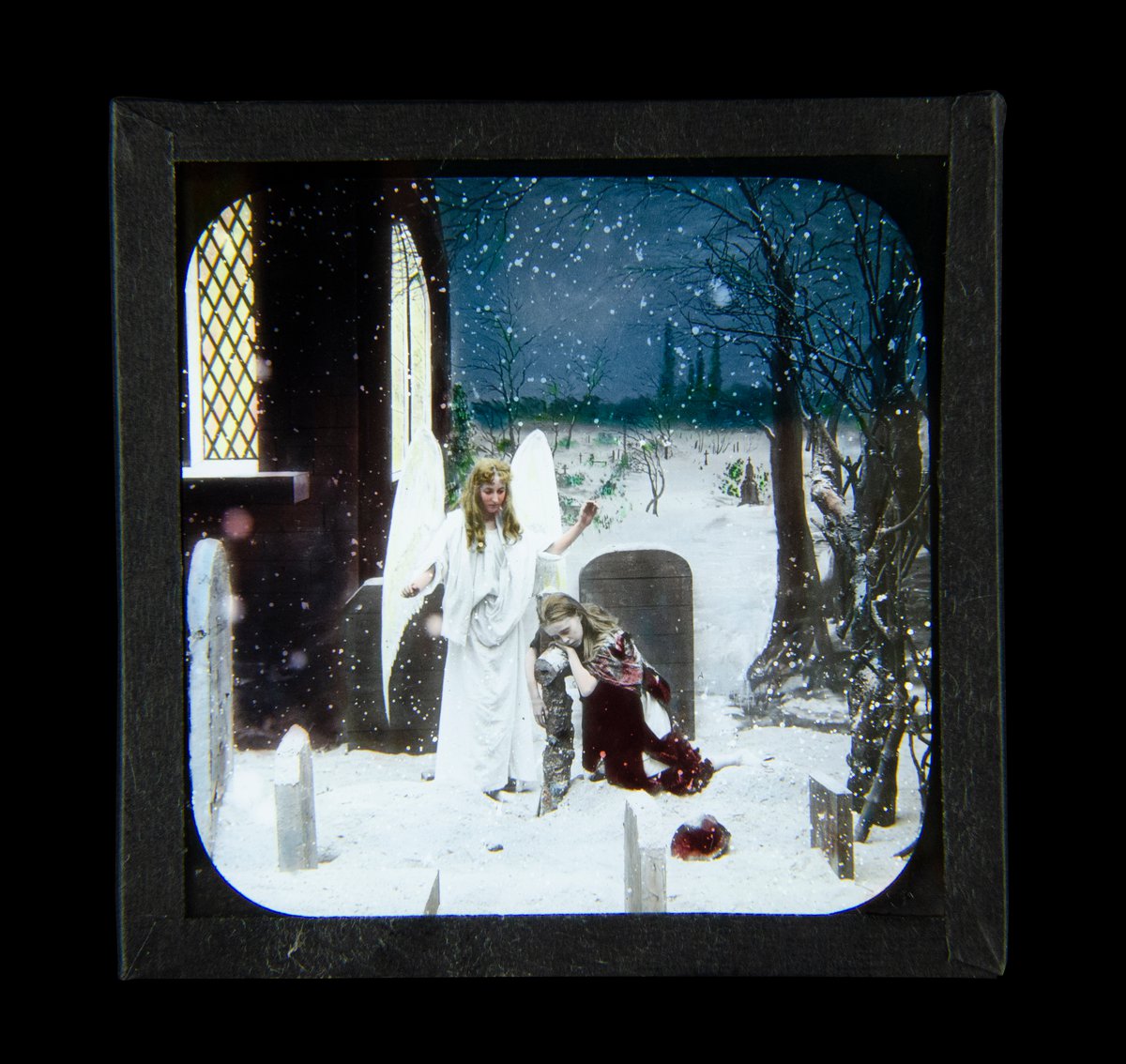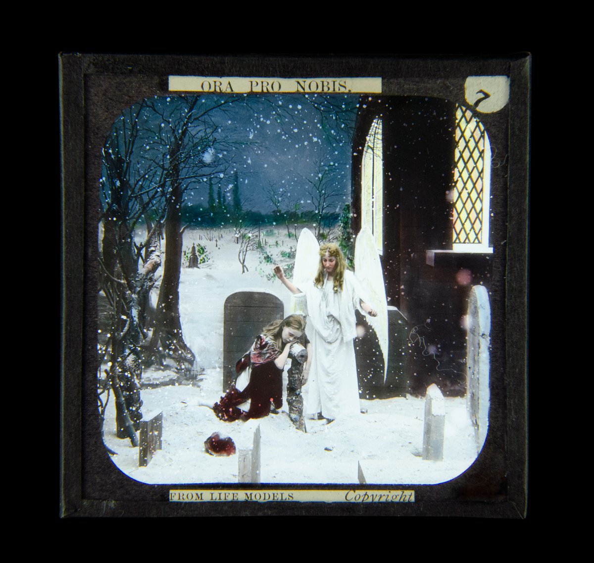 Magic Lantern Slide. Ora Pro Nobis No7 c1890 photo Victorian angel in graveyard
